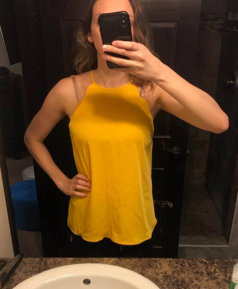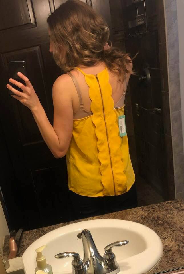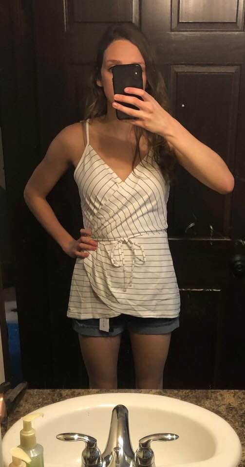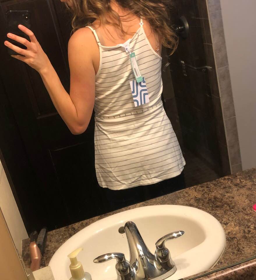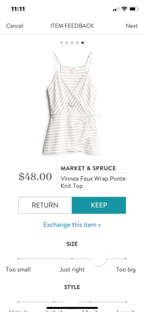 My stylist sized up for me in the top so that it would be a bit longer (which I appreciate!) but, consequently, it was too big on me. Even with a loose fit I could tell this shirt would be flattering on the right person but it just wasn’t on me! I felt like it was a bit bulky in the stomach area and that’s the last thing I wanted after having a baby! Lol. Very comfortable and soft material.
